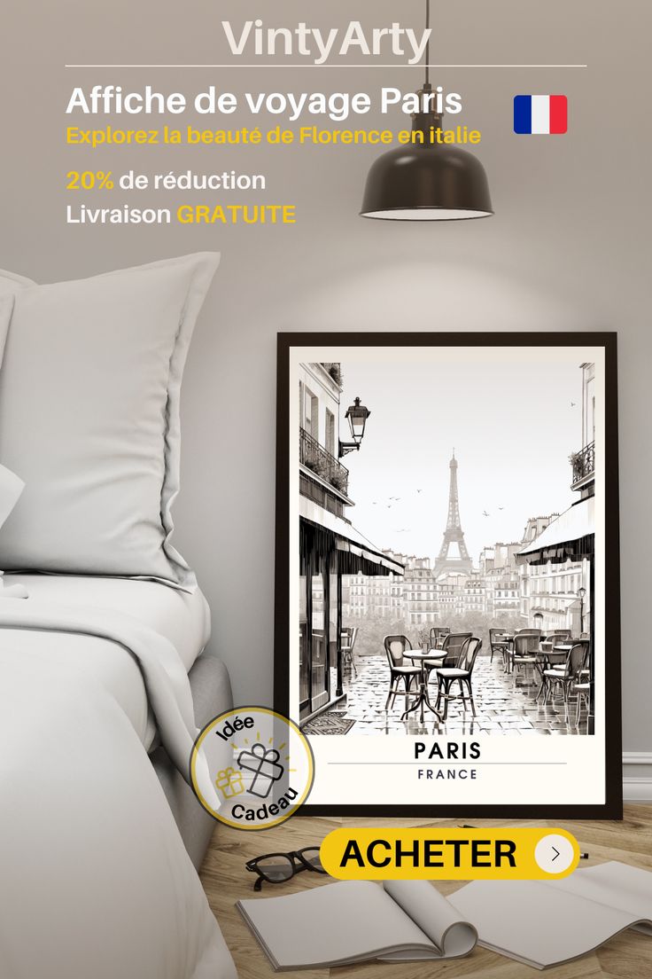 Cette affiche Paris est une magnifique idée de cadeau . Une impression emblématique capture l’essence intemporelle de Paris dans une palette de noir et blanc, évoquant le charme classique de la Ville Lumière. La scène nocturne, illuminée par des lumières douces, met en valeur l’architecture élégante de Paris, offrant une ambiance à la fois mystérieuse et captivante.
